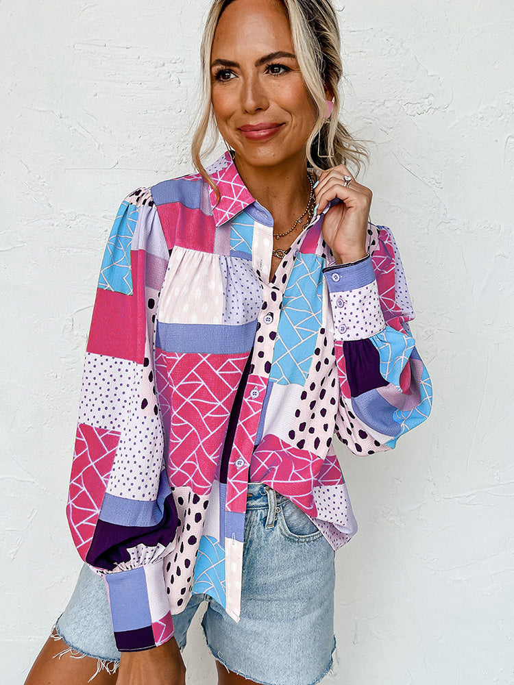 Geovanna - Camisa de Manga Larga Con Estampado Geométrico