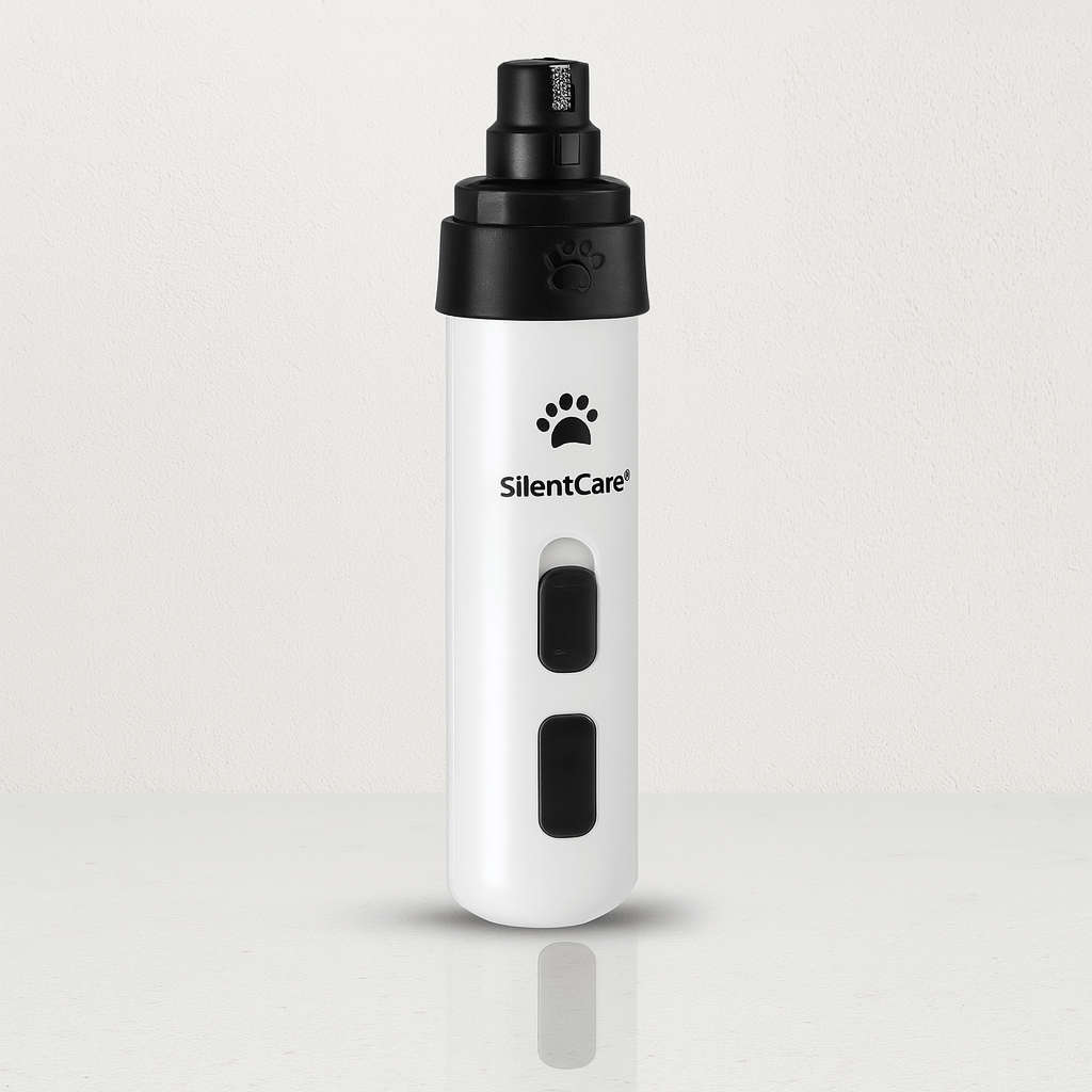 Silent Care® utiliza un motor de corriente continua silencioso para eliminar el estrés, el miedo y las molestias durante el corte de uñas.